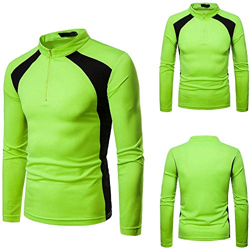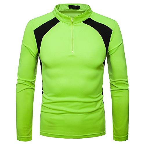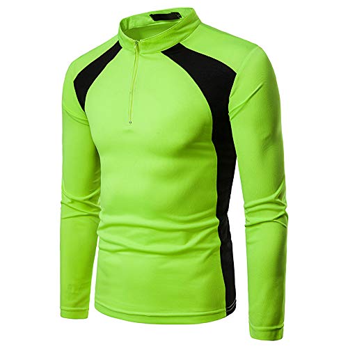 YanHoo Camisetas térmicas para Hombre Camisa de Manga Larga con Cremallera para Hombre Camisa de Manga Larga de la Raya de la Cremallera del Empalme de la Moda de los Hombres Blusa Superior